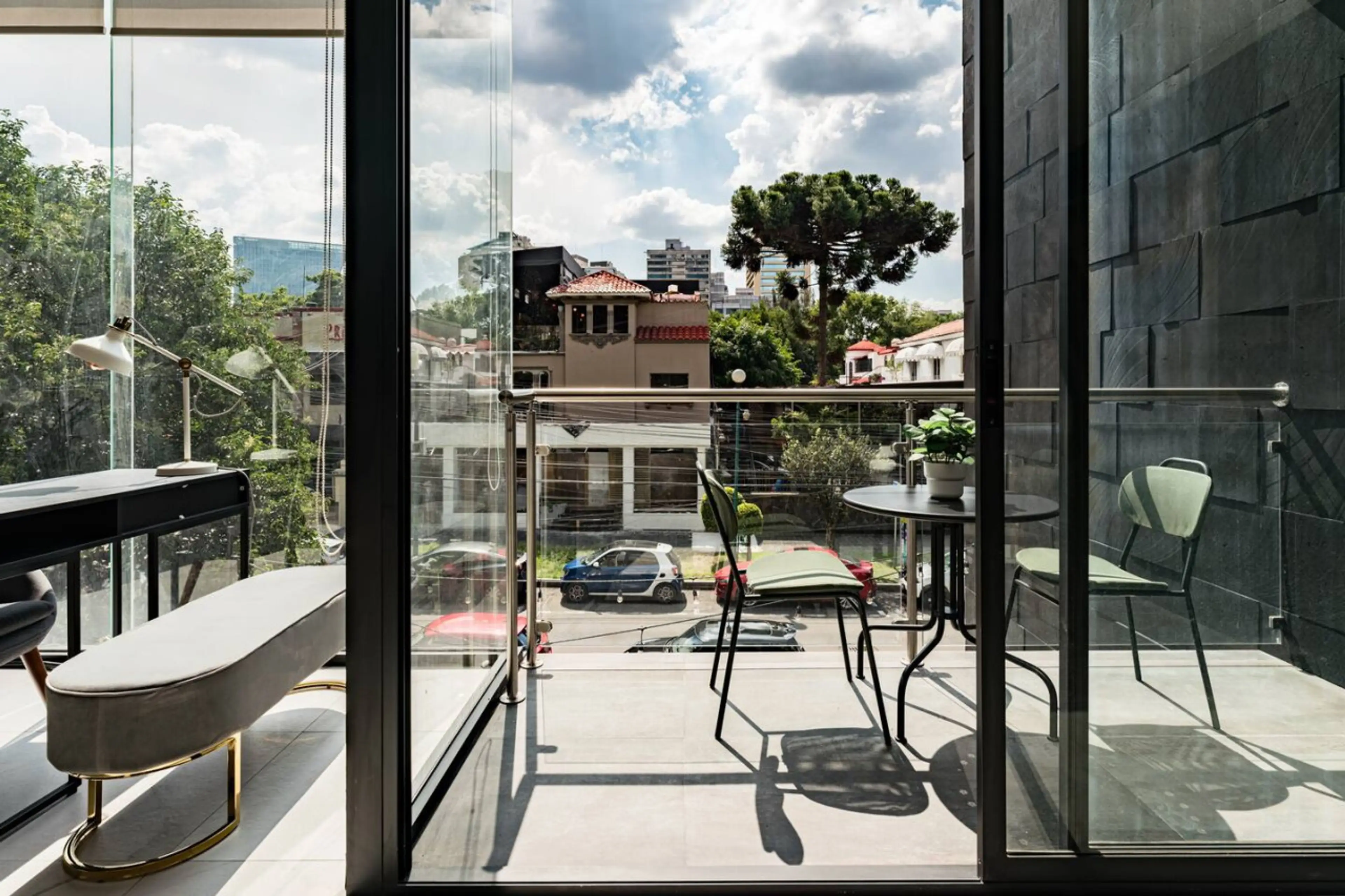 Urban Elegance Apartment with Balcony Views