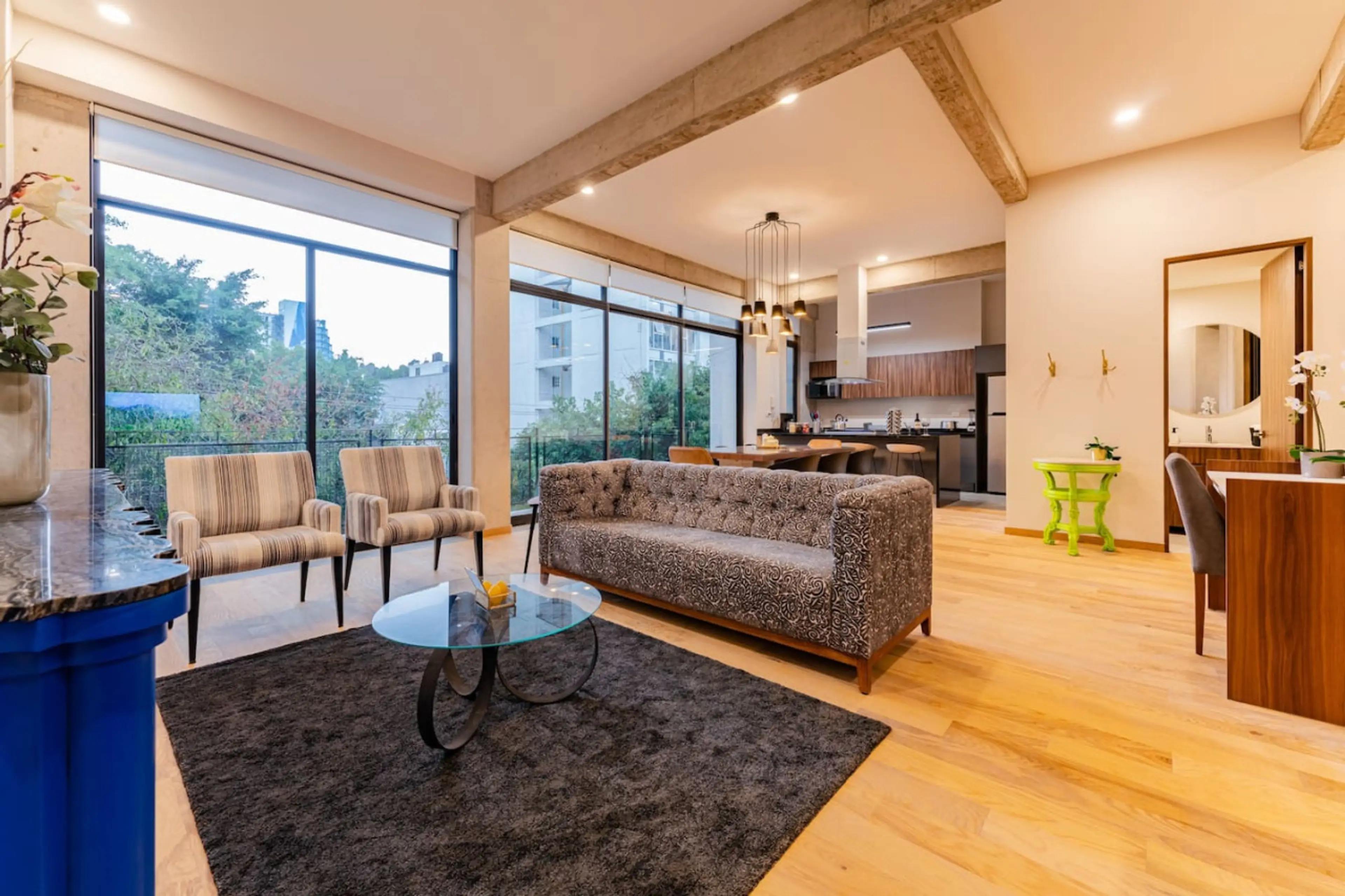 - Experience Roma Norte living in this stunning modern apartment, perfect for groups and families. - Four spacious bedrooms, each with full en-suite bathrooms. - Enjoy bold artwork, bright open spaces, and floor-to-ceiling windows, and a private balcony with city views. - Fully equipped kitchen, ...